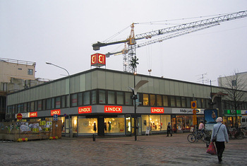Niskakadun ja Kauppakadun kulma marraskuussa 2006 ja syksyllä 2008. Kulmassa ollutta liiketaloa korotettiin kerroksella kauppakeskus Ison Myyn ja koko korttelin umpeenrakentamisen yhteydessä.