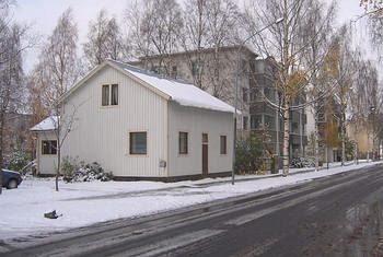 Merimiehenkadun länsireuna Malmi- ja Suvantokadun välillä. Etualan puutalon takana olevan talon paikalle on rakennettu kerrostalot osoitteina 23a ja 23b. Kuvat vuosilta 1987 ja 2005.