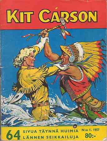 Lehden oheisessa ensimmäisessä numerossa Kit Carson ilmoitti, että hän voittaa laajan preerian vaarat. Häntä sanottiin Lännen kuninkaaksi. Toverinaan hänellä oli Hirvennahka Annie. Mainos lupasi, että Kit Carson on korkealuokkainen jännityssarja, mestarillinen kuvitus, jokainen sivu ahdettu täyteen huimia seikkailuja ja vaaroja. Teksti ja skannaus: Hannu Asikainen |