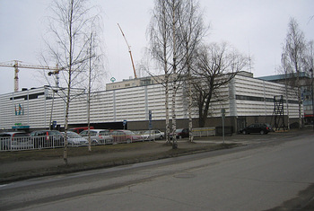 Centrumin tavaratalon valkoinen ulkoverhoilu purettiin pois ja tilalle laitettiin vihreä pinnoitus samalla kun koko talo saneerattiin sisätiloiltaan. Samanaikaisesti tavaratalon pysäköintialueen paikalle rakennettiin pysäköintitalo. Kuvat huhtikuussa 2007 ja 2009. |