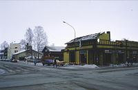 Kauppakadun ja Suvantokadun kulma vuosina 1985 ja 2005. Keltainen puutalo purettiin keväällä 1986 ja uudisrakennus valmistui kesällä 1988. |