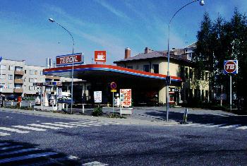 Kirkkokadun ja Yläsatamakadun kulmassa oleva Teboil-huoltamo uusittiin 1990-luvun puolivälissä. Vanha purettiin pois tai paikalle nousi uusi rakennus polttoaineenjakelukatoksineen. Kuvat vuosilta 1994 ja 1997.