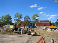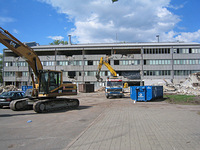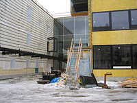 Koskikadun varren huonokuntoiseksi mennyt Joensuun lyseon peruskoulu purettiin maan tasalle kesällä 2005. Paikalle nousi 2005–2007 lasiseinäinen uudisrakennus. Kuvat kesäkuulta 2005 ja toukokuulta 2008 Koskikadun puolelta. |