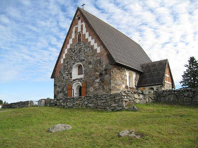 Tyrvään Pyhän Olavin kirkko on rakennettu 1506–1516. Kirkon runkohuone on suhteellisen pieni, ulkomitoiltaan 27,1 × 15,5 metriä. Kirkon puuosat tuhoutuivat tuhopoltossa syyskuussa 1997. Rakennuksen muodon voi hyvin nähdä mutta tulipalossa ja osittain sen jälkeisessä restauroinnissa hävisi runsaasti yksityiskohtia. Kirkko on muurattu erikokoisista kivistä ja sen koillis- ja luoteiskulmissa on kulmakivet. Eteläseinän pääsisäänkäynti, länsiseinän sivusisäänkäynti ja papinovi ovat varsin hyvin alkuperäisessä asussaan. Sakaristo on rakennettu samanaikaisesti runkohuoneen kanssa. Päädyssä on omaleimainen tiilikoristelu, joka seurailee runkohuoneen koristelua. Asehuone on muurattu runkohuoneen valmistumisen jälkeen jopa joskus 1600-luvulla. Vuonna 1855 on pidetty viimeinen jumalanpalvelus ja kirkko jäi autioksi. 1950 luvulta lähtien se on ollut matkailunähtävyys.