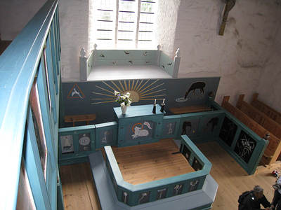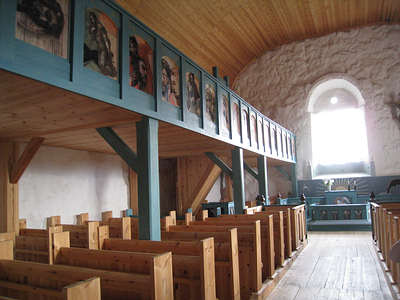 Sisätilan seinistä huomaa, että kirkko piti kattaa yksilaivaiseksi salikirkoksi kahdella neliömäisellä tiiliholvilla. Holvausta ei kuitenkaan koskaan toteutettu. Kirkossa oli jo vuonna 1646 valmistettu kaunis saarnatuoli ja penkit ajalta 1664–1666. Vuonna 1748 oli valmistunut kuviokoristeltu paanukatto. Ennen paloa kirkossa oli kauniisti patinoitunut laudoista tehty tasalakinen tynnyriholvi.