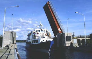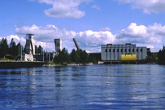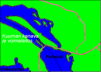 Joensuun jälkeen on ensimmäisenä vastassa Kuurnan kanavasulku. Alhaalta tultaessa kanavalle johtava väylä on vasemmalla.