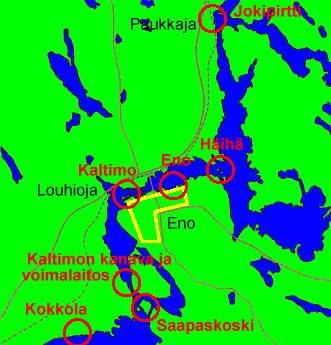 Kolmas osuus joella jatkuu Jakokoskelta Kaltimon kanavan ja voimalaitoksen sekä Enon kautta Paukkajalle.