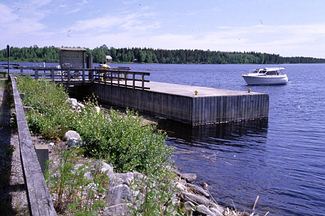 Laiturilta, jonka kupeessa on veneiden laskuluiska, on noin 800 metrin matka Uimaharjun taajaman palveluihin. Itse laiturin tuntumassa ei ole mitään rakennuksia.